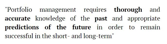 Portfolio management requires thorough and accurate knowledge of the past and appropriate predictions of the future in order to remain successful in the short- and long-term.
