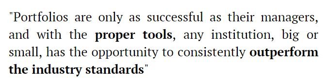 For a long time, portfolio managers have had to rely on brokers for research and on themselves for performance analytics. In a way, finance has been disrupted much later than other industries, which had to evolve much sooner.