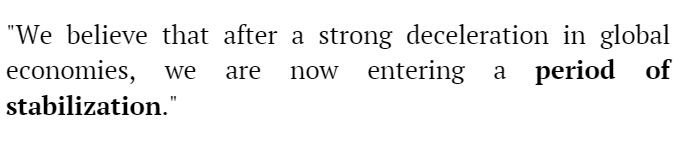 We believe that after a strong deceleration in global economies, we are now entering a period of stabilization.